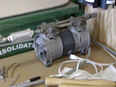A useful accessory for the lathe is vacuum chucking. This is the vacuum pump